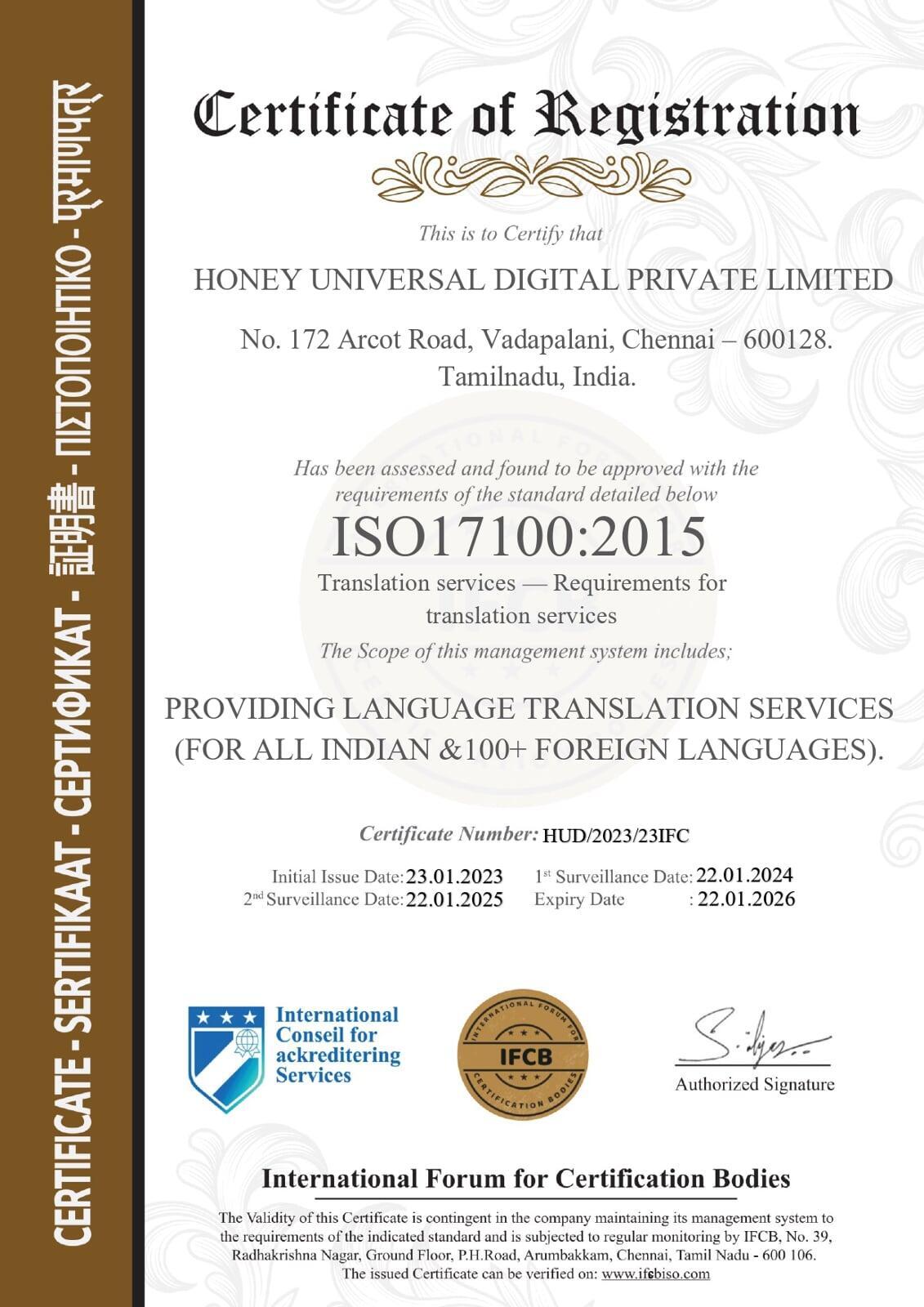 Honey Universal Digital Private Limited is proud to be ISO 9001:2015 certified for its Quality Management System.